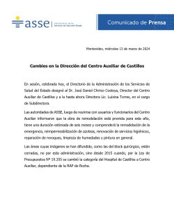La Administración de los Servicios de Salud del Estado (ASSE) ha anunciado hace instantes cambios en la dirección del Centro Auxiliar de Castillos.